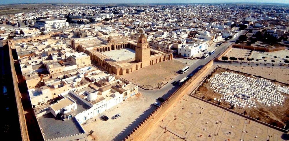 Die Stadt Kairouan ist nach Mekka, Medina und Jerusalem die viertwichtigste Stadt des Islam. Sie wurde 670 n. Chr. von einem Anhänger des Propheten Mohammed gegründet, der viele wundersame Erscheinungen hatte und steht an der Stelle, an der eine Quelle entsprang. Es heißt, daß sieben Besuche in Kairouan einer Fahrt nach Mekka entsprechen. Der Vorhof der Großen Moschee (der außer freitags auch von "Ungläubigen" besucht werden darf) soll an heiligen Tagen bis zu 200.000 Pilger aufnehmen können. Es gibt viele andere Moscheen und Schreine in der Stadt, die Große Moschee ist jedoch die heiligste Stätte.