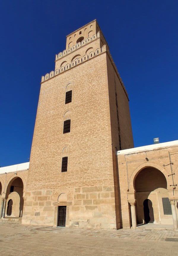 Das bedeutendste Bauwerk Kairouans ist zweifellos die Sidi Oqba Moschee, die mit ihren mächtigen Mauern geradezu einen festungsartigen Eindruck vermittelt. Sie ist nicht nur die älteste Moschee des Maghreb, sondern sie diente auch lange Zeit als Vorbild für nachfolgende Bauwerke. Ihr dreistufiges, 35 Meter hohes, relativ schmuckloses Minarett, ist heute eines der Wahrzeichen der Stadt. Der Gebetsraum hatte schon damals die beachtliche Breite von 16 Meter.
