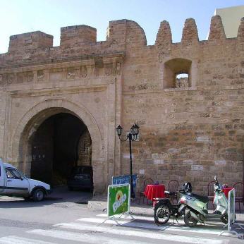 Zurück zum Ribat de Sidi Dhuib und von dort aus in die Medina von Monastir mit ihrer wuchtigen, turmbewehrten Stadtmauer aus dem 18. Jahrhundert. Die Mauern der Medina wurden in den letzten Jahrzehnten größtenteils restauriert. Die Ostmauer ist leider zerstört, aber die Nord-, West- und Südmauer sind immer noch beeindruckend. Es gibt insgesamt zwölf Tore zur Medina.