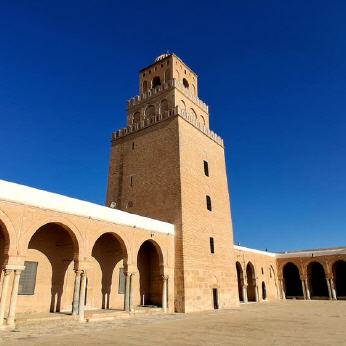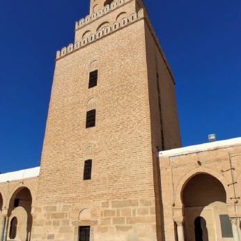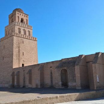 Das bedeutendste Bauwerk Kairouans ist zweifellos die Sidi Oqba Moschee, die mit ihren mächtigen Mauern geradezu einen festungsartigen Eindruck vermittelt. Sie ist nicht nur die älteste Moschee des Maghreb, sondern sie diente auch lange Zeit als Vorbild für nachfolgende Bauwerke. Ihr dreistufiges, 35 Meter hohes, relativ schmuckloses Minarett, ist heute eines der Wahrzeichen der Stadt. Der Gebetsraum hatte schon damals die beachtliche Breite von 16 Meter.