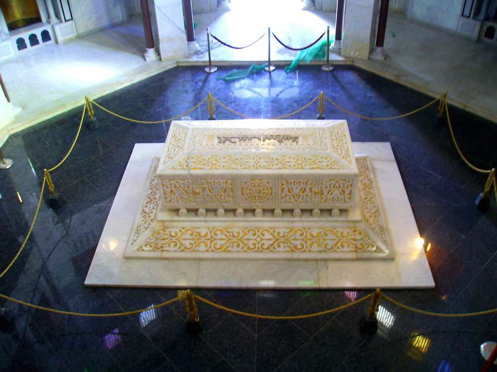 Das von zwei 25 Meter hohen Minaretten flankierte Gebäude wird von einer goldenen Kuppel bekrönt, die wiederum von zwei grünen Kuppeln umgeben ist. Das Eingangstor des Mausoleums und das Tor, das es vom restlichen Friedhof trennt, sind zwei herausragende Beispiele tunesischer Baukunst. [2]