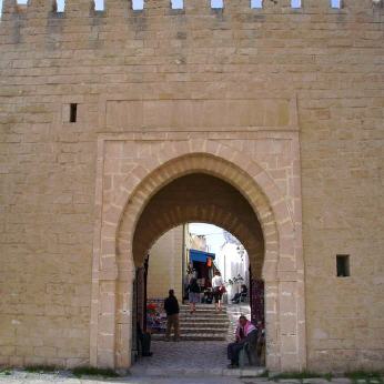 Zurück zum Ribat de Sidi Dhuib und von dort aus in die Medina von Monastir mit ihrer wuchtigen, turmbewehrten Stadtmauer aus dem 18. Jahrhundert. Die Mauern der Medina wurden in den letzten Jahrzehnten größtenteils restauriert. Die Ostmauer ist leider zerstört, aber die Nord-, West- und Südmauer sind immer noch beeindruckend. Es gibt insgesamt zwölf Tore zur Medina.