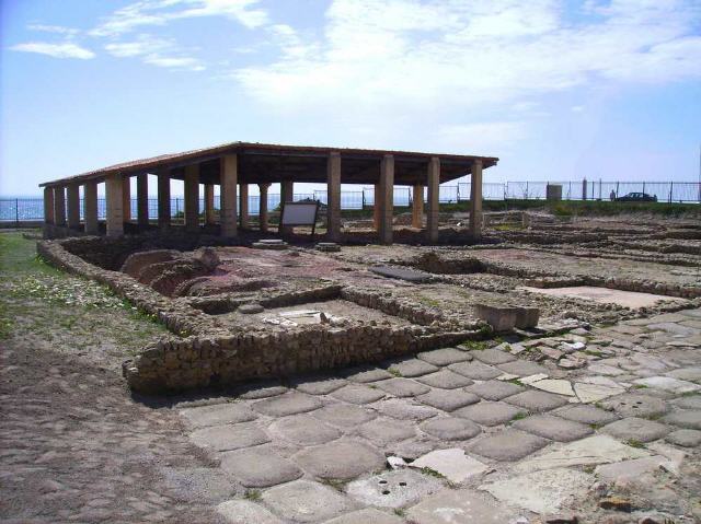 Dieses Privathaus (lat. Nympharum domus - 4. Jahrhundert n. Chr.), es könnte sich um eine Schule für Philosophie handeln, ist in seinen Ausmaßen ungewöhnlich groß. Es war einst reiches Haus mit Peristyl und Viridarium (Nutzgarten) mit einer Fläche von ca. 1500 Quadratmetern. Das Haus hatte etwa zwanzig Zimmer, wovon sich einige zu einer asphaltierten Straße hin öffneten. Diese Zimmer wurden wahrscheinlich als Geschäfte genutzt. Die meisten Zimmer sind mit schönen vielfarbigen Mosaiken gepflastert.